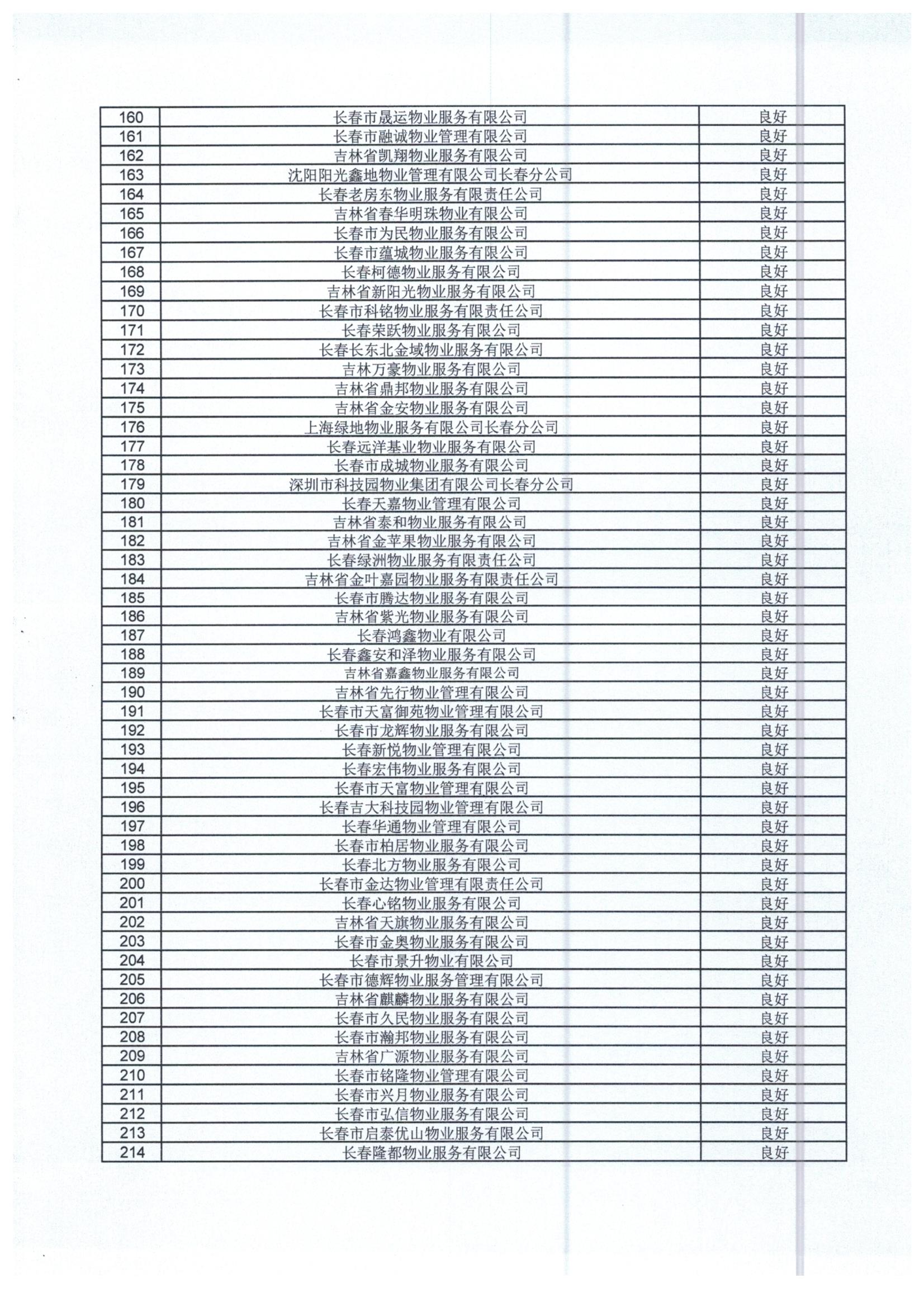 关于公布2022年度长春市物业服务企业信用等级评定结果的通知